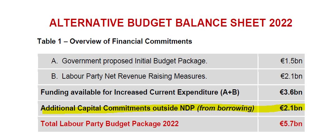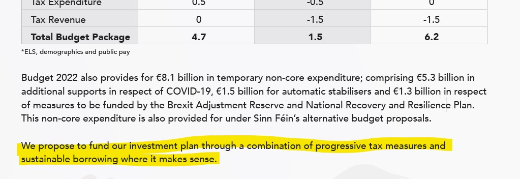 Whereas Labour and the Social Democrats provide for their additional measures in core expenditure through a mix of fiscal space funds, new taxation, and new borrowing, Sinn Fein does not have a dedicated line item on borrowing for core expenditure and I think that is where the gap lies in their budget.