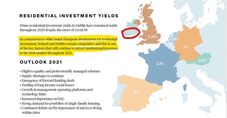 Housing Reits in Ireland today currently pay out an average of 3.75% on investment.