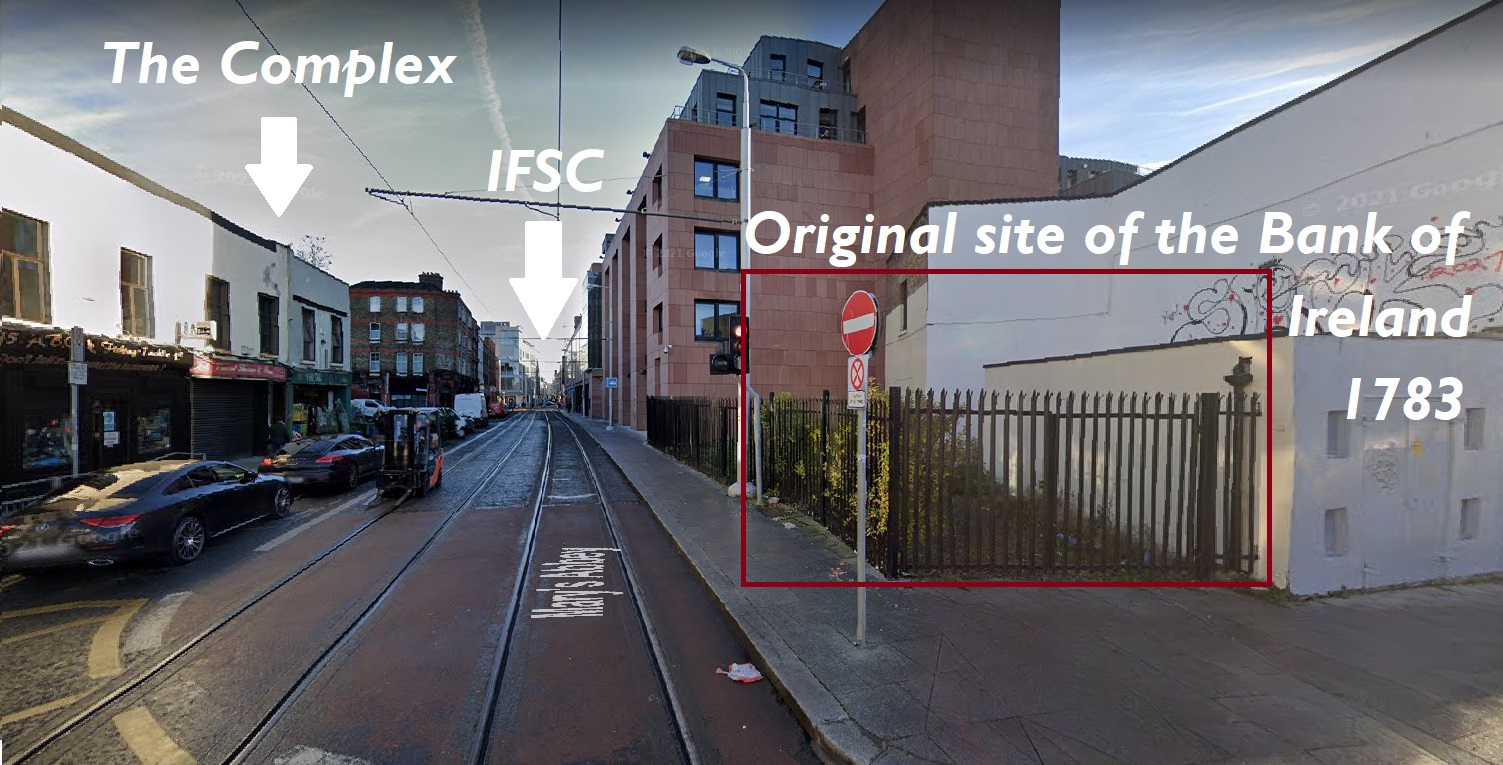 Crossing over the river we encounter the original site of the Bank of Ireland, which opened up on 25 June 1783 at a now vacant site on Mary’s Abbey. This stop allows me to talk about the role of finance within Irish capitalism – in particular, comprador finance and its current manifestation in the IFSC.