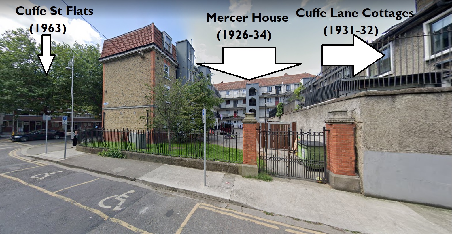 Which brings us to the corner of Cuffe Lane and Cuffe St and the three examples of public and social/affordable housing in the area.